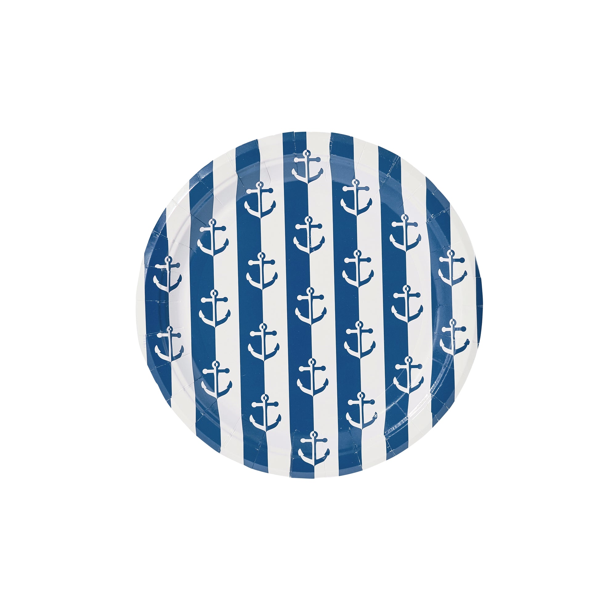 Navy Anchor Away Stripes Dessert Paper Plates - 8 Pack